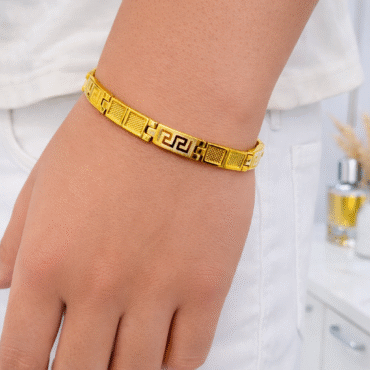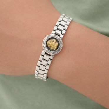 Premium Greek Design Silver Bracelet for Men | Gold Finish Link Bracelet by Silveradda