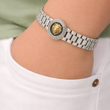 Royal Greek Pattern Lion Head Bracelet for Men | Silveradda