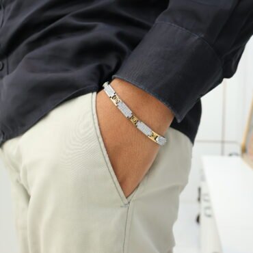 Silver Bracelet for Men with Gold Links & Stone Design Silveradda