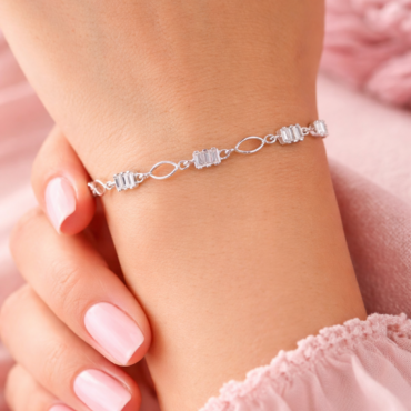 Elegant Baguette Link 925 Sterling Silver Bracelet for Women | Silveradda