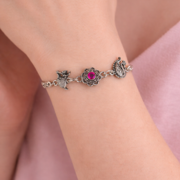 Pink Stone Floral Design 925 Silver Bracelet for Women – Silveradda