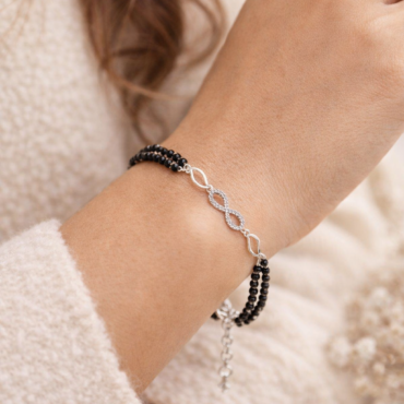 925 Silver Infinity Black Bead Bracelet for Women | Silveradda