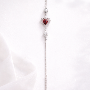 Romantic Heart Design Red Stone Silver Bracelet for Women | Silveradda