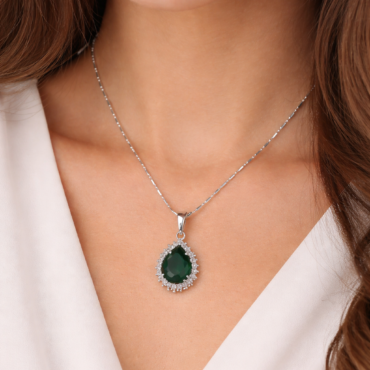 925 Sterling Silver Royal Green Emerald Pear-Cut Halo Pendant | Silveradda