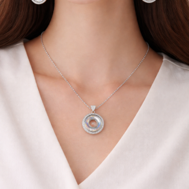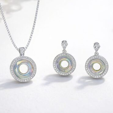 Iridescent Circle Silver Set for Women | 925 Pendant & Earrings | Silveradda