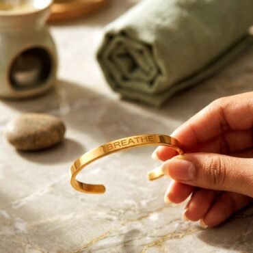 Breathe Engraved kada for Women – Minimal Inspirational Cuff | Silveradda