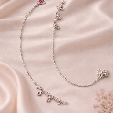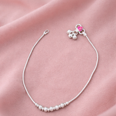 Delicate Pink Gem Charm Silver Anklet for Women | Silveradda