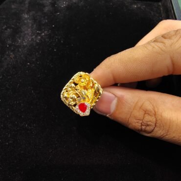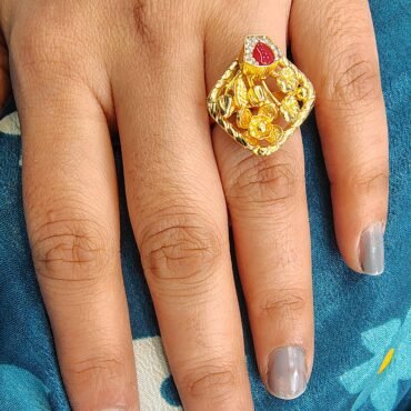 Gold-Plated Floral Silver Ring with Red Kundan and Gemstone | Silveradda