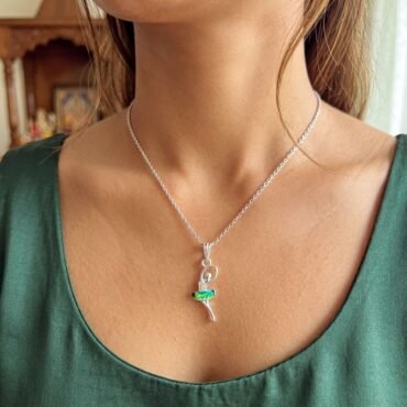 Sterling Silver Ballerina Pendant – Elegant Green Enamel | Silveradda