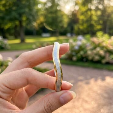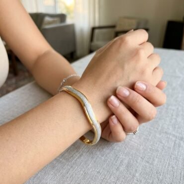 Dual Tone Wave Design Silver Kada with Stone 2.2 size | Silveradda