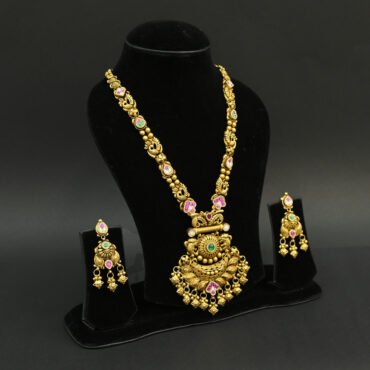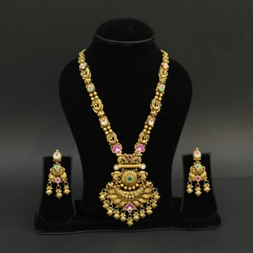 Temple Necklace Set – Antique Gold South Indian Bridal Jewellery Silveradda