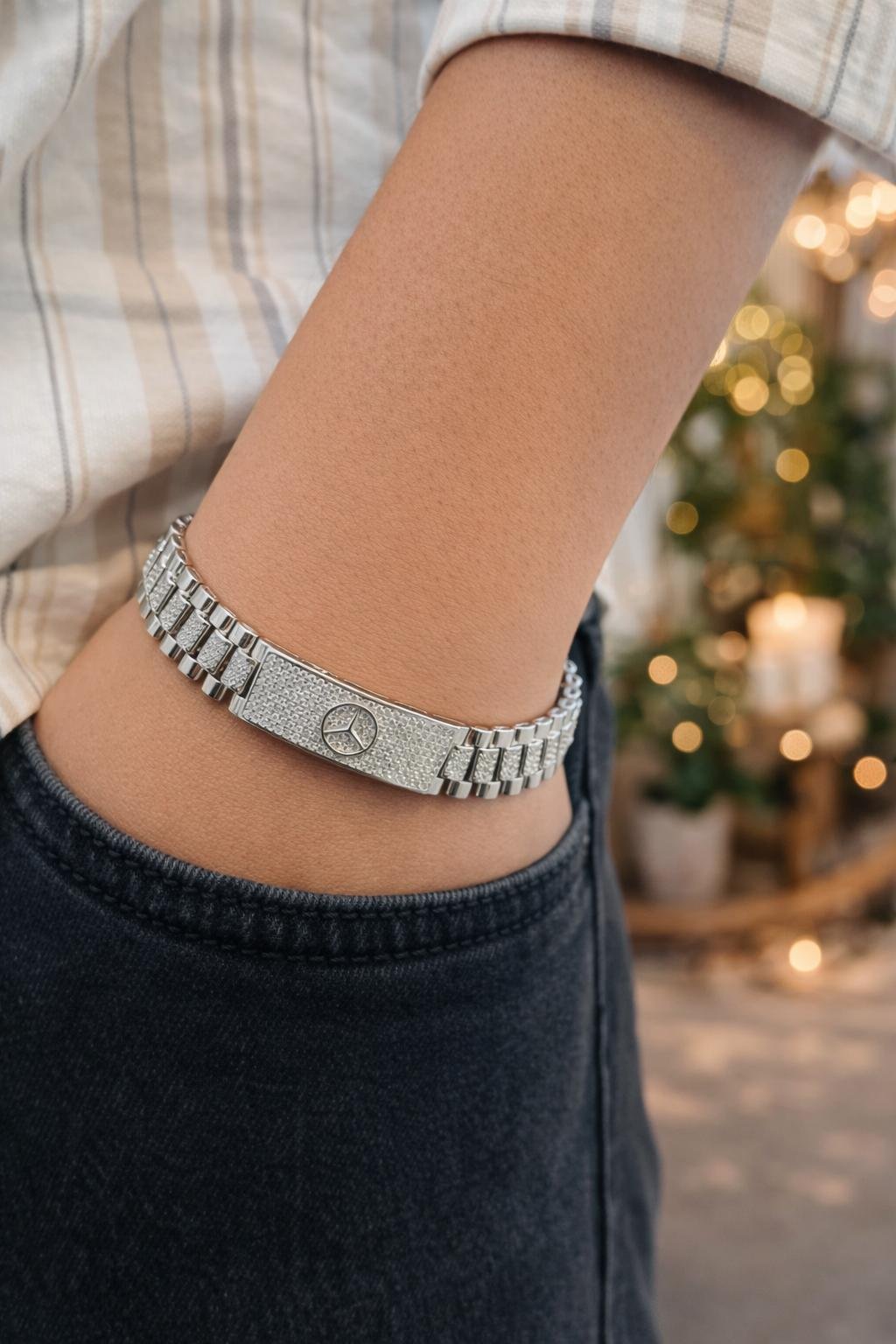 The 925 Royal Crest Silver Statement Bracelet – Silveradda is a premium accessory crafted for men who appreciate bold design and superior quality. Made from genuine 925 sterling silver, this bracelet offers lasting durability, a rich polished shine, and a luxurious feel that stands out in every setting. It is designed to reflect confidence, strength, and modern elegance.