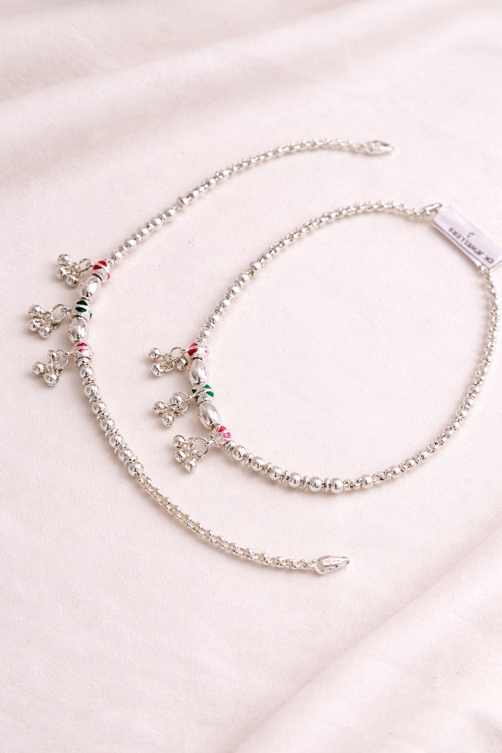 Crafted with high-quality silver, this anklet offers durability along with a beautiful shine. Moreover, the colorful bead accents enhance its ethnic appeal, making it ideal for festive wear, traditional outfits, and special occasions. Whether you pair it with a saree, lehenga, or even a casual outfit, this anklet stands out beautifully.
