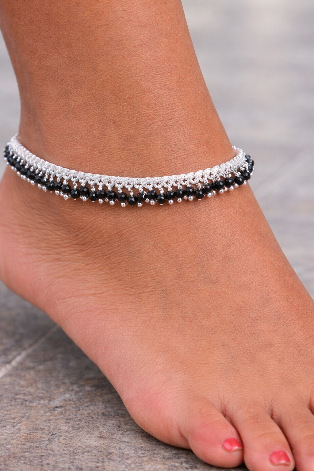 Additionally, this black bead silver anklet is easy to maintain and retains its shine with proper care. It complements every style and enhances your overall look beautifully.