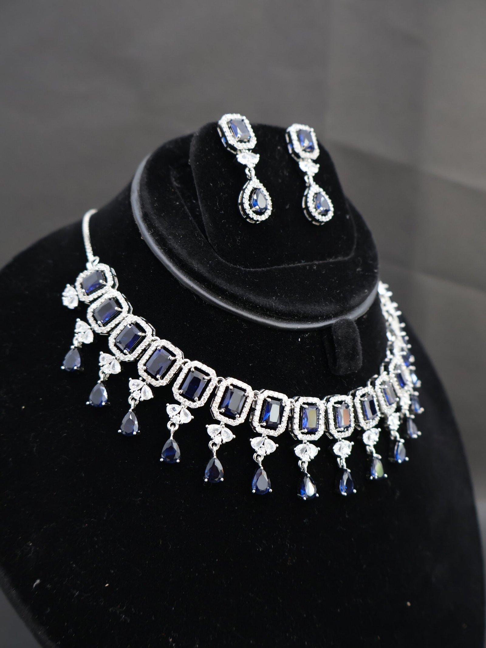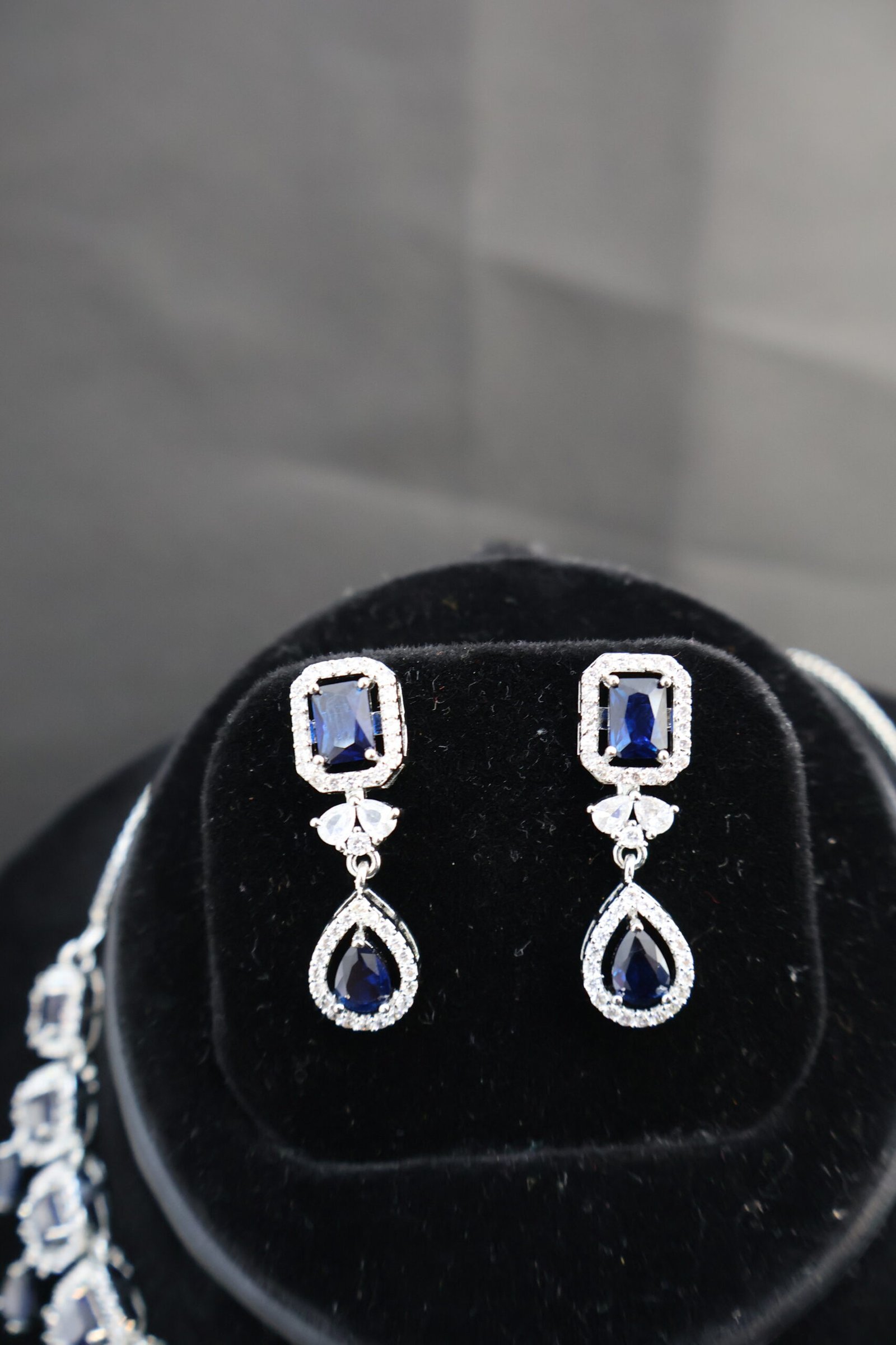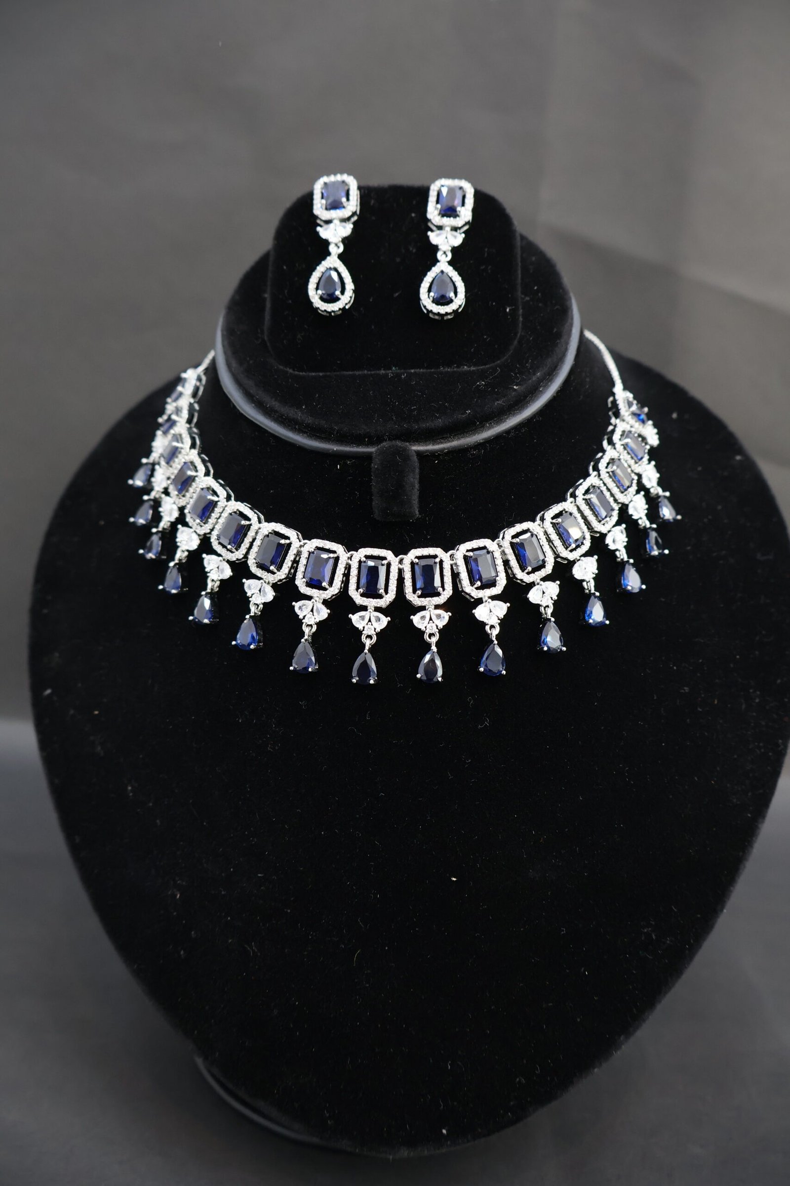 Blue Stone Necklace Set with Earrings for Bridal & Party Wear is designed to give a royal and graceful look for weddings, receptions, festive celebrations, and special occasions. Featuring deep blue stones with sparkling crystal detailing, this elegant jewellery set creates a luxurious and eye-catching appearance.