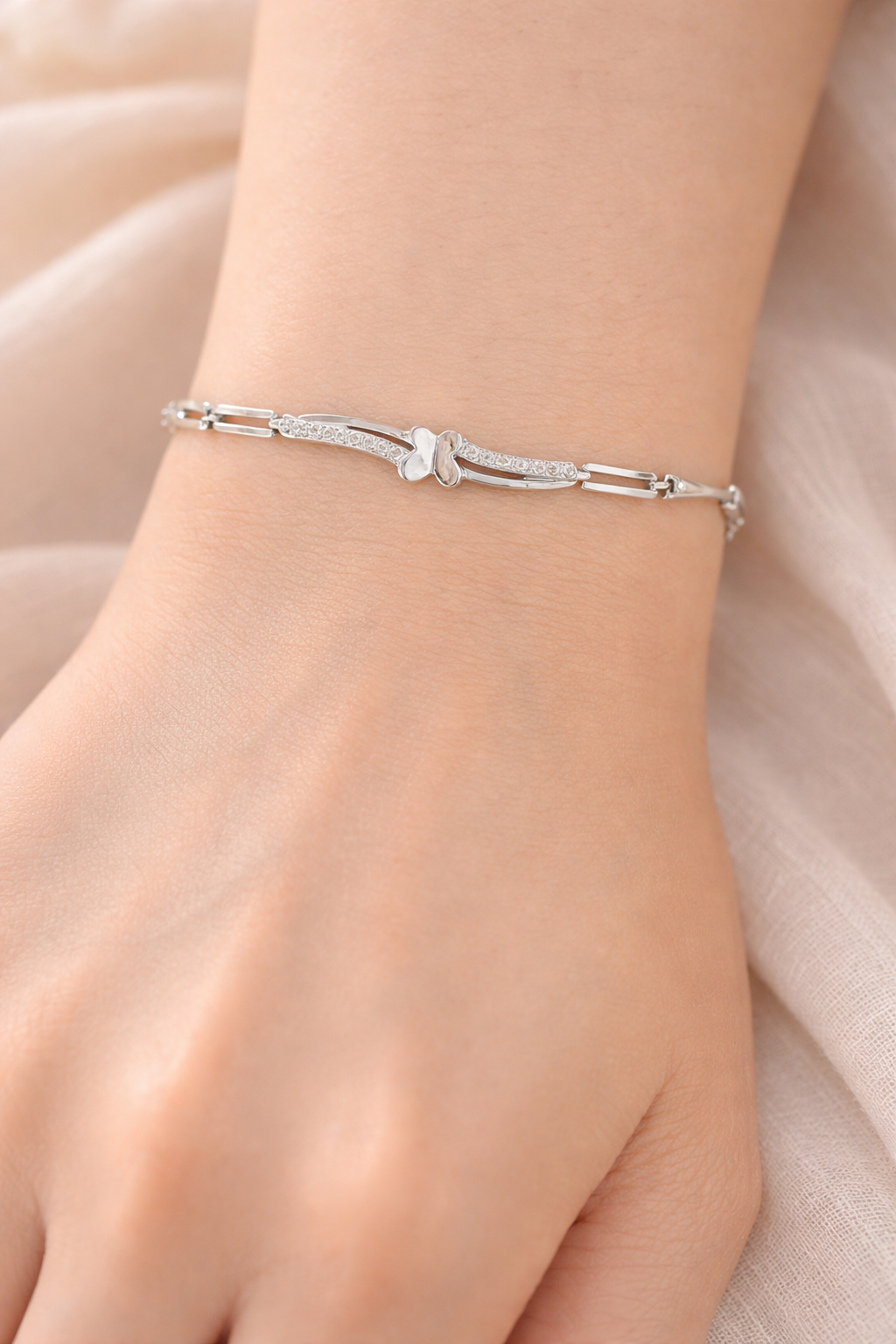 This bracelet is made from high-quality 925 sterling silver. Therefore, it is durable and long-lasting. In addition, the polish gives it a bright and premium finish. The bracelet is decorated with Cubic Zirconia (CZ) stones, which add a beautiful sparkle. As a result, it looks classy without being too heavy.