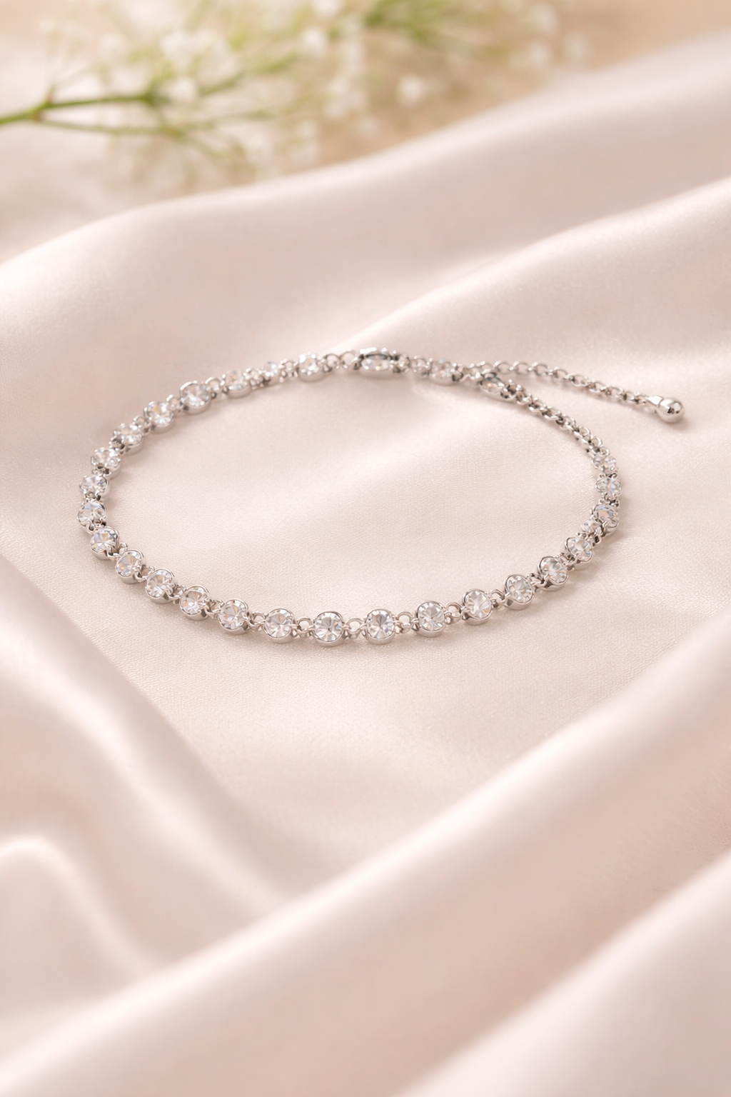 The polished silver finish highlights the sparkle of the stones. As a result, the bracelet gives a premium and elegant appearance.