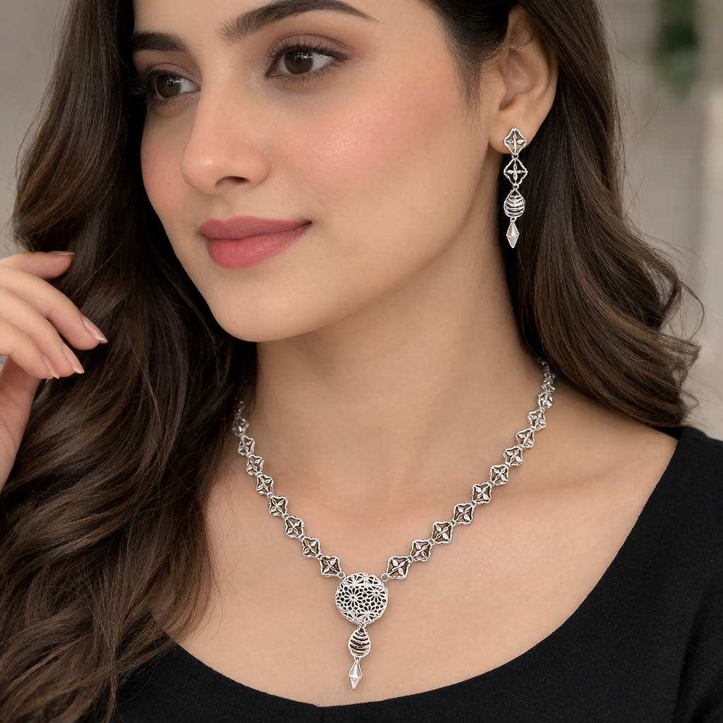 filigree silver necklace set is a perfect choice for women who love elegant and artistic jewelry. Known for its delicate patterns and intricate metalwork, filigree jewelry reflects traditional craftsmanship combined with modern style.