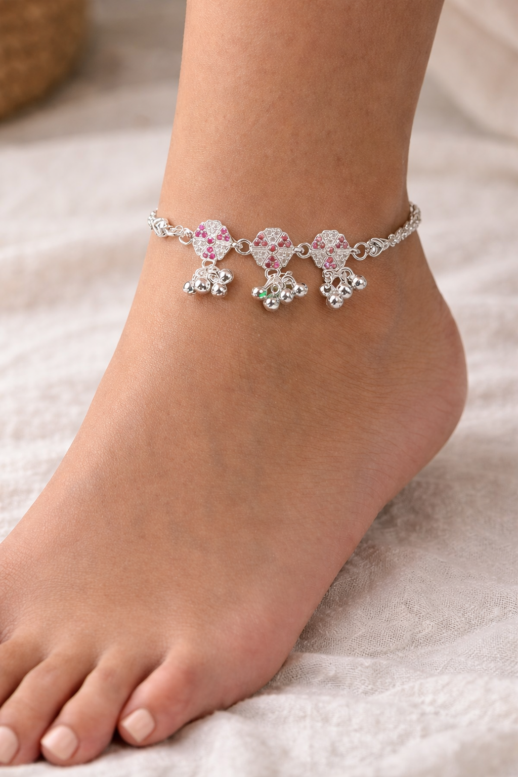 If you are looking for a stylish, traditional, and elegant anklet, this Floral Pink Stone Silver Anklet is the perfect choice. Add it to your collection and elevate your everyday look.