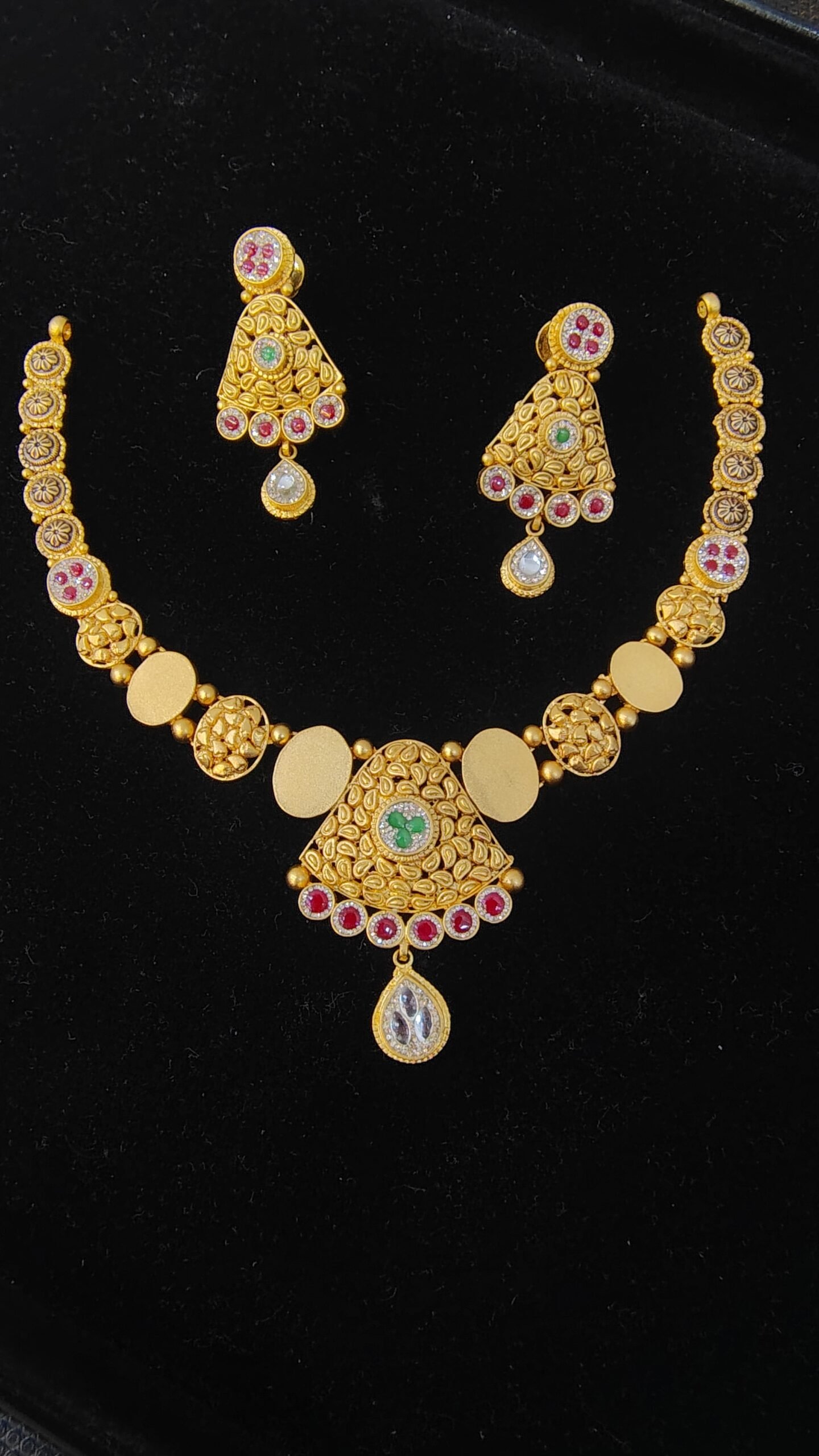 Gold Plated Regal Heritage Silver Necklace With Earrings | Silveradda