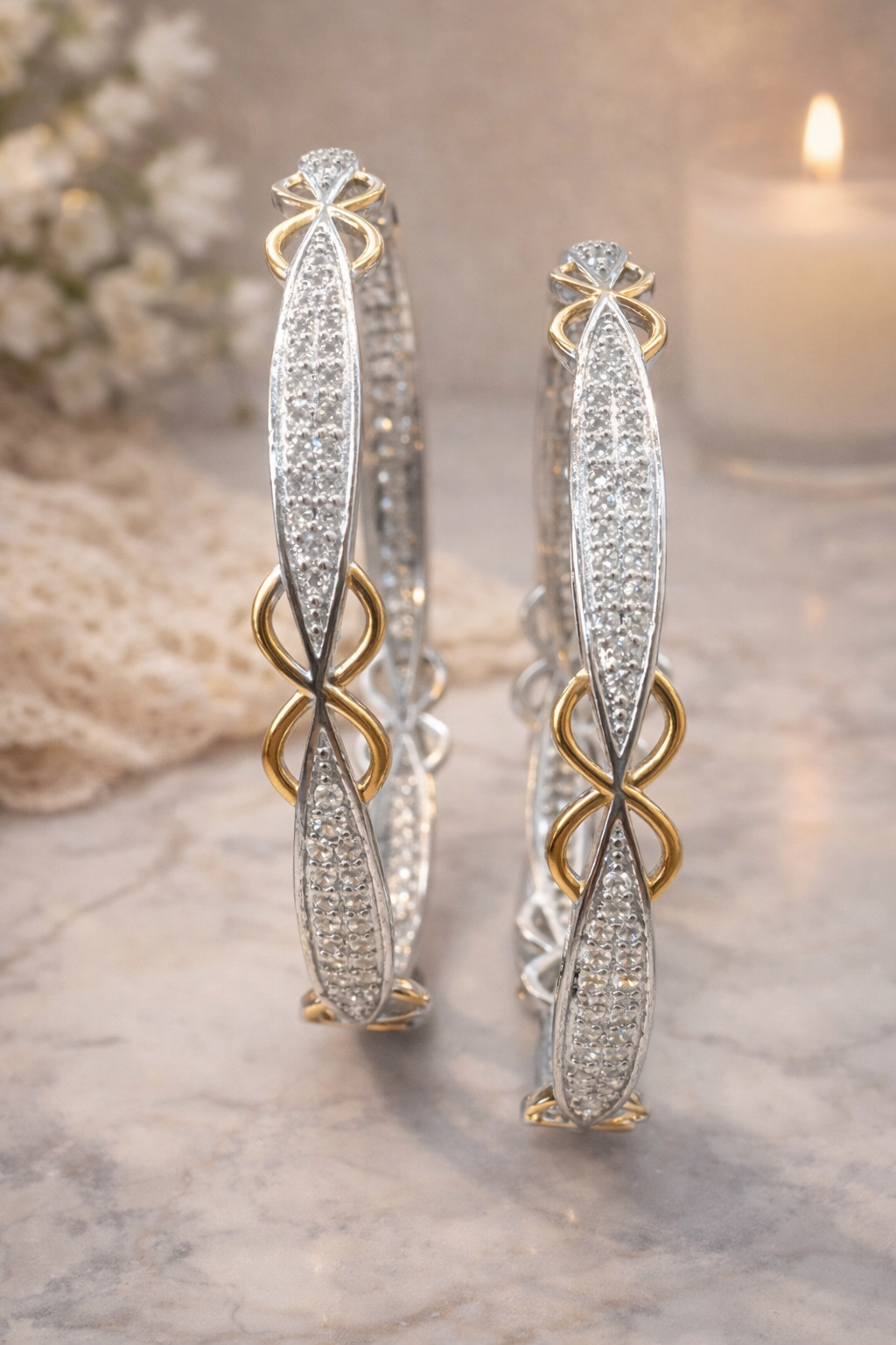 An elegant silver bangle is more than just an accessory—it represents timeless beauty and emotional connection. This dual tone sterling silver bangle with an infinity design is crafted for girls and women who appreciate meaningful jewelry with a modern finish. Made from  sterling silver, it features a refined blend of silver shine and subtle gold accents.