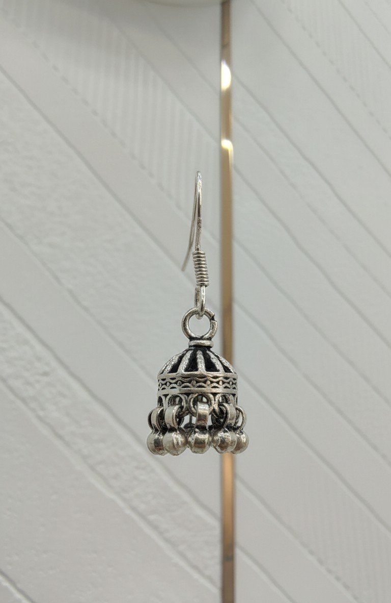 ✔ 1 Pair of Oxidized Silver Traditional Jhumka Earrings