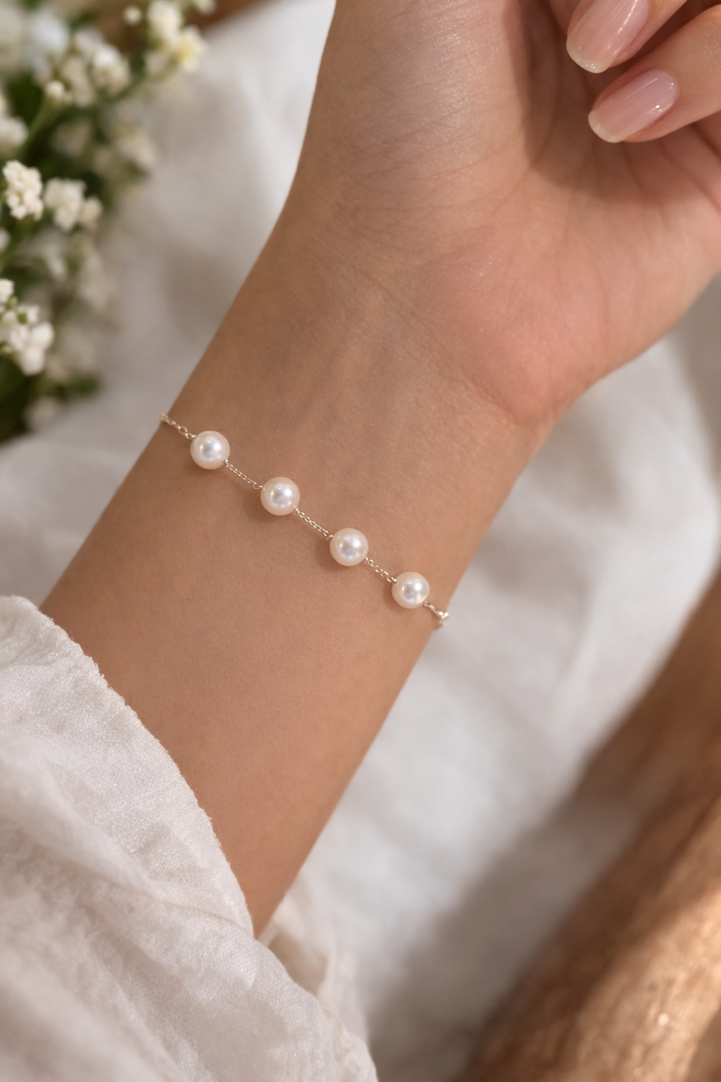 Crafted with high-quality silver, this bracelet is lightweight, comfortable, and durable for long-term wear. The delicate chain enhances the beauty of the pearls while maintaining a minimalist aesthetic. The pearl drops are carefully spaced along the chain, creating a flowing design that looks elegant on the wrist.