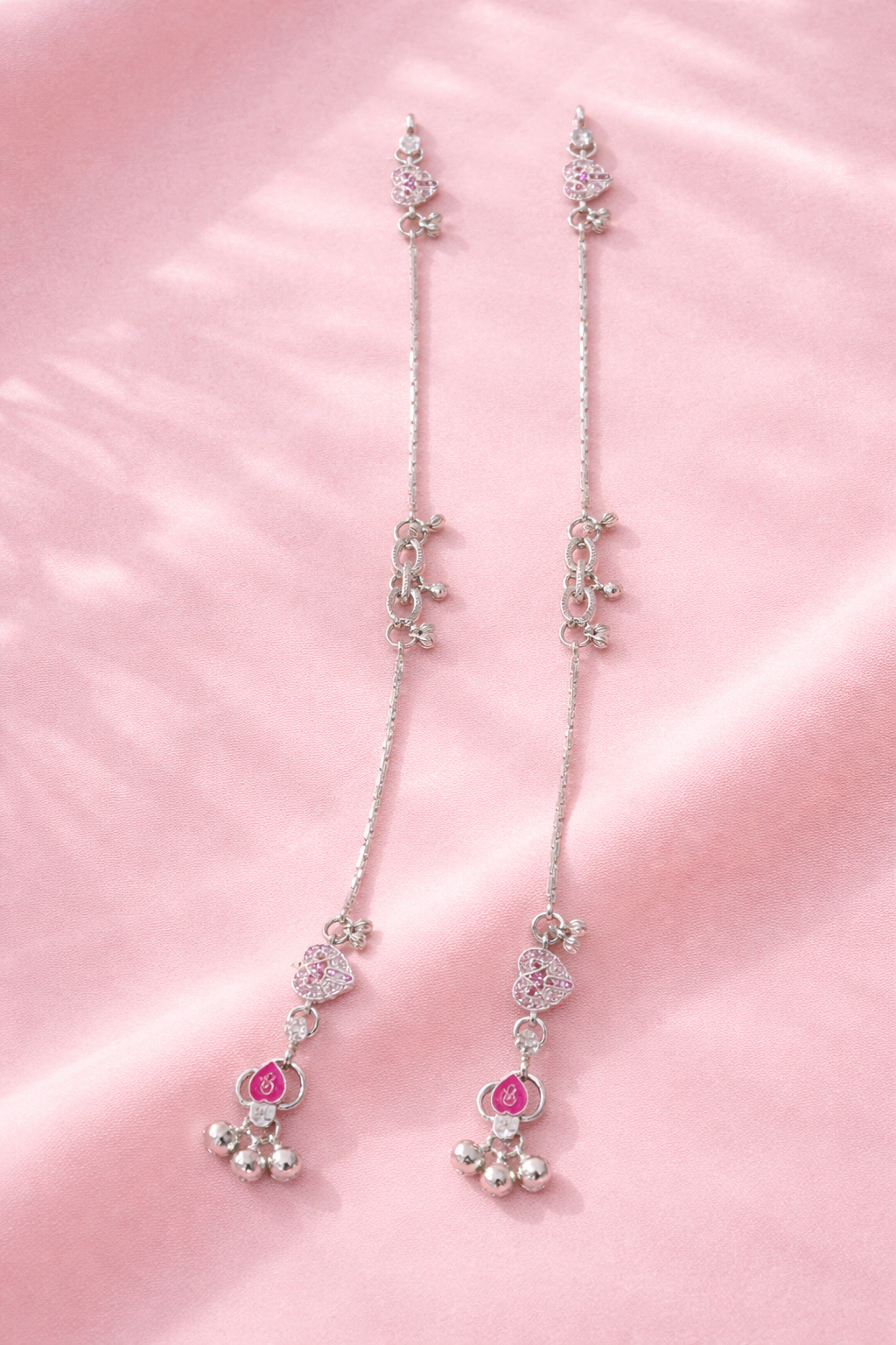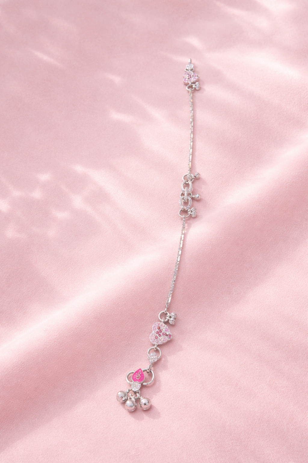 This anklet is made from high-quality  sterling silver, ensuring long-lasting shine, durability, and a premium feel. The highlight of this design is the adorable pink heart charm, which symbolizes love, femininity, and grace. The soft pink tone adds a subtle pop of color, making it ideal for both casual and festive wear.