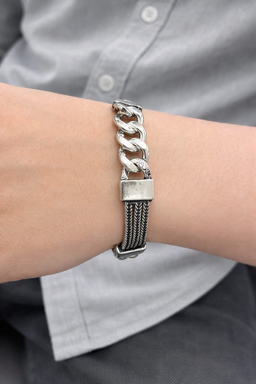 Because of its structured chain design, this bracelet stands out while maintaining a refined corporate look.