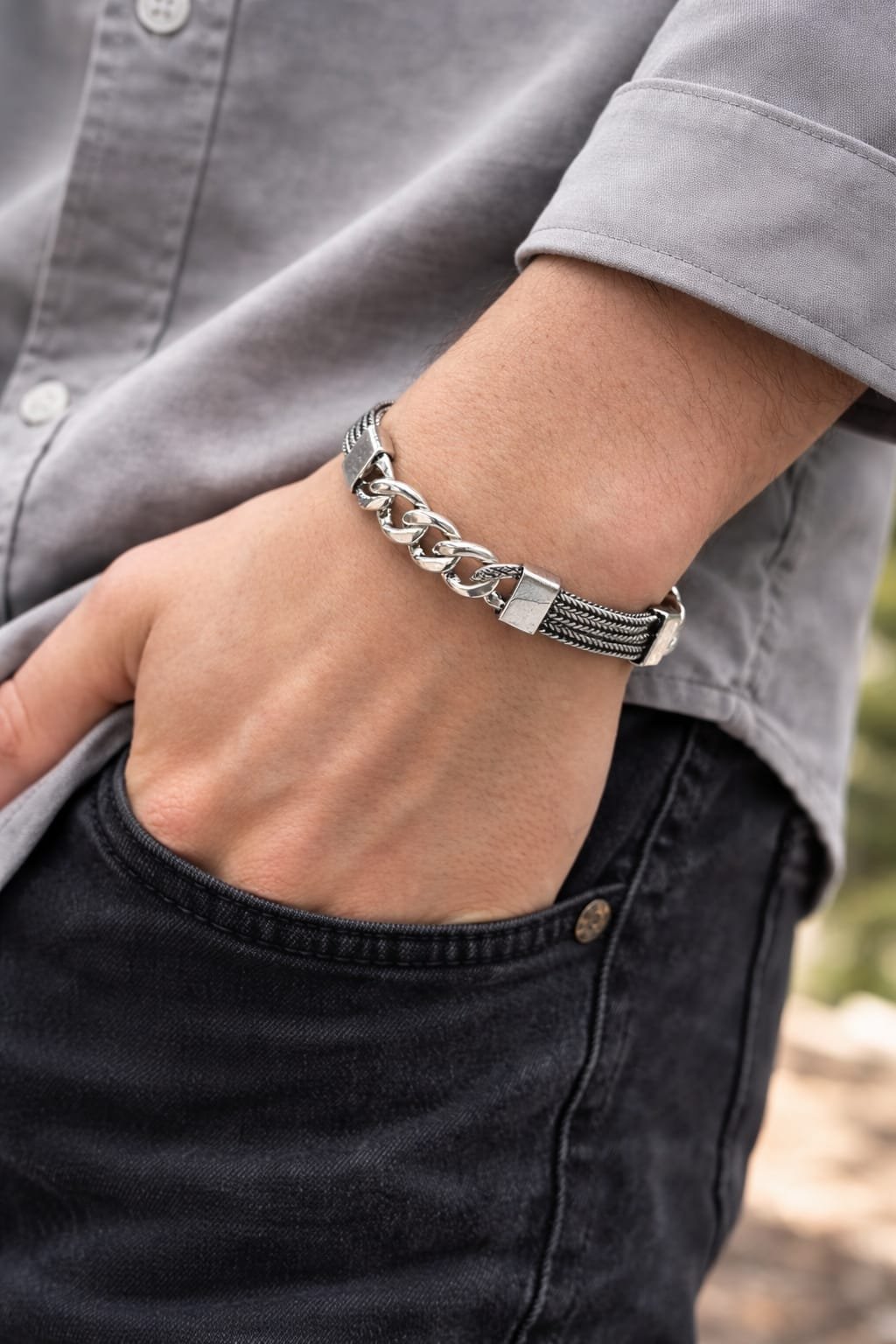 Upgrade your style with this Premium 925 Silver Chain Bracelet for Men, crafted for those who prefer bold yet professional jewellery. Designed with a strong dual-chain pattern and polished finish, this bracelet adds confidence to your everyday office and formal look.
