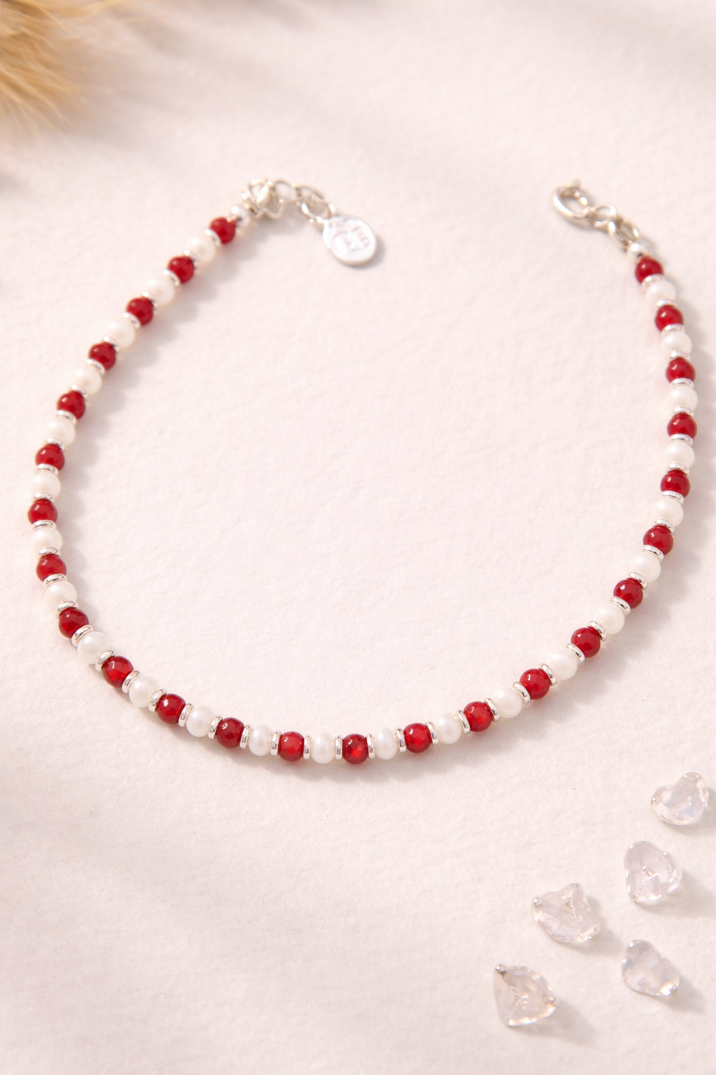 This red beaded anklet is a beautiful blend of minimal style and elegant design. It is crafted for women who love simple yet eye-catching jewelry. The anklet features a stunning combination of red and white beads that create a classic and timeless look.