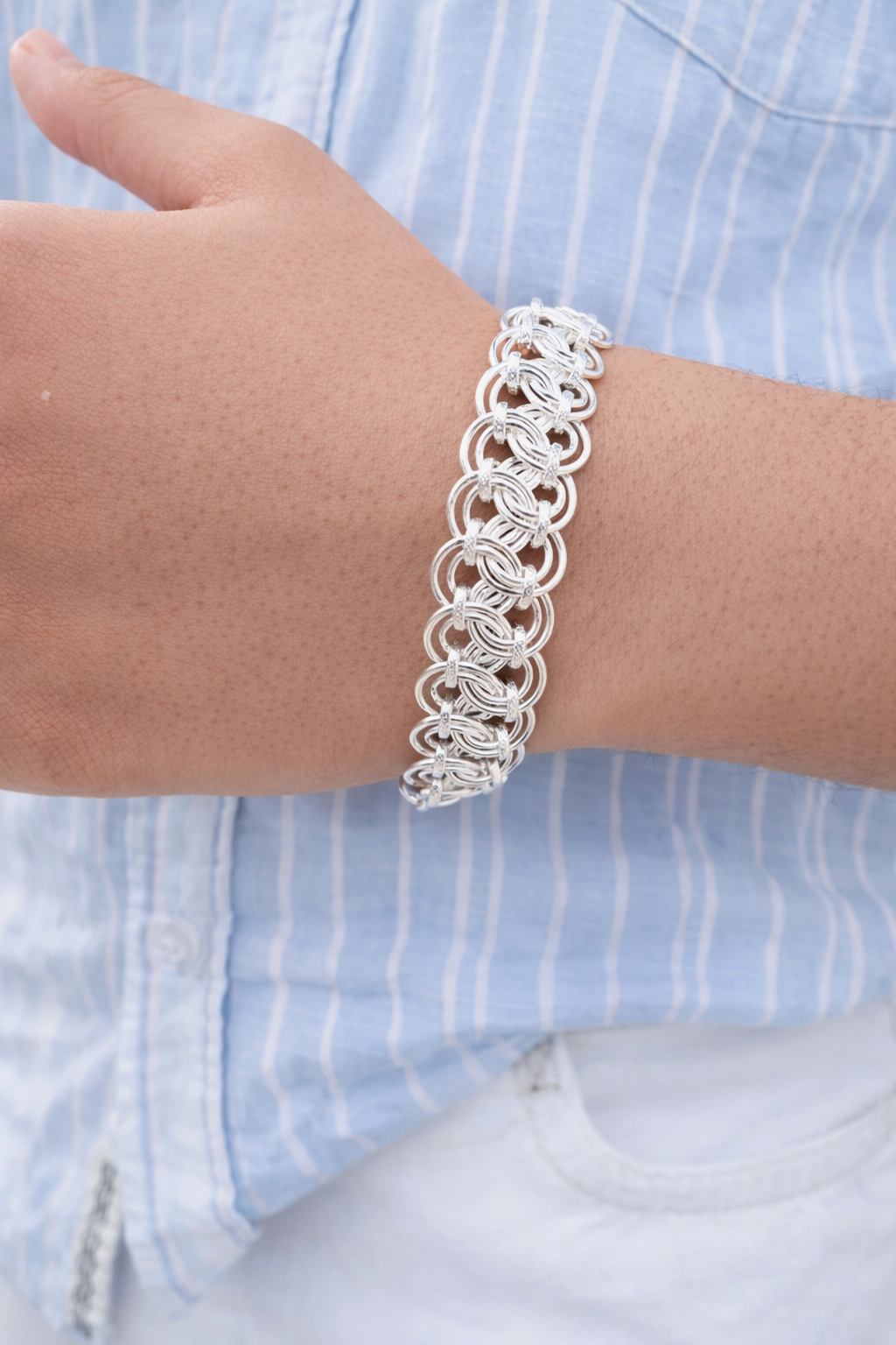 Whether you’re styling it with casual outfits or formal attire, this luxury linked silver bracelet adds confidence and sophistication to your personality.