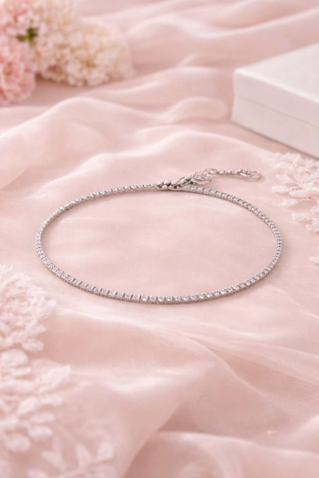 Crafted from high-quality 925 sterling silver, this bracelet ensures durability, long-lasting shine, and skin-friendly wear. The fine tennis chain design gives it a sleek and sophisticated appearance, making it perfect for both everyday wear and special occasions. Whether you are dressing up for a party, office, or casual outing, this Tennis CZ Silver Bracelet complements every outfit effortlessly.