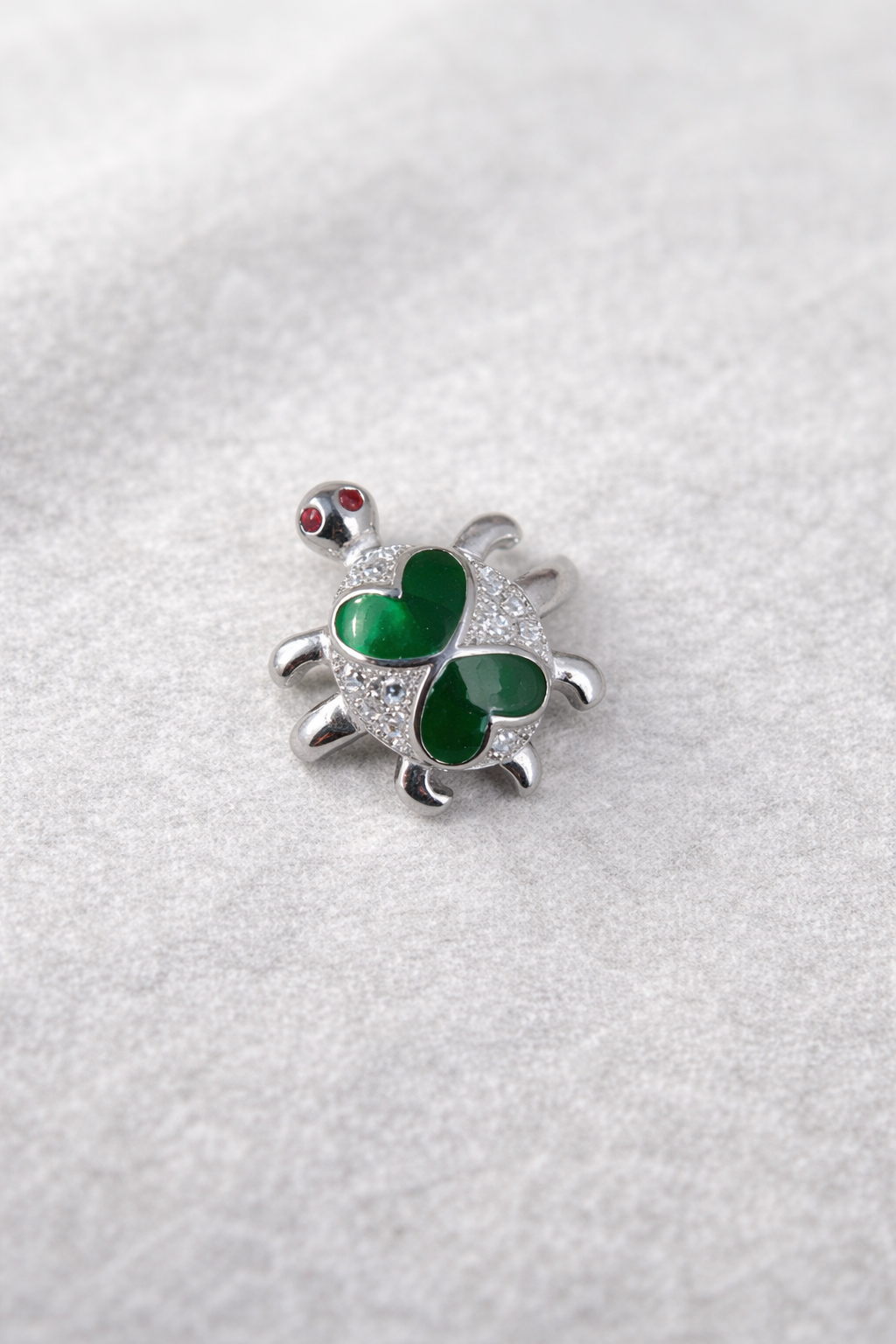 The ring features a cute tortoise motif adorned with rich green enamel detailing that gives it a vibrant and eye-catching appeal. Sparkling white diamond-like stones (high-quality zircon) are embedded delicately to enhance its shine and sophistication. Crafted from premium 925 sterling silver, this ring ensures durability, skin-friendliness, and long-lasting shine.