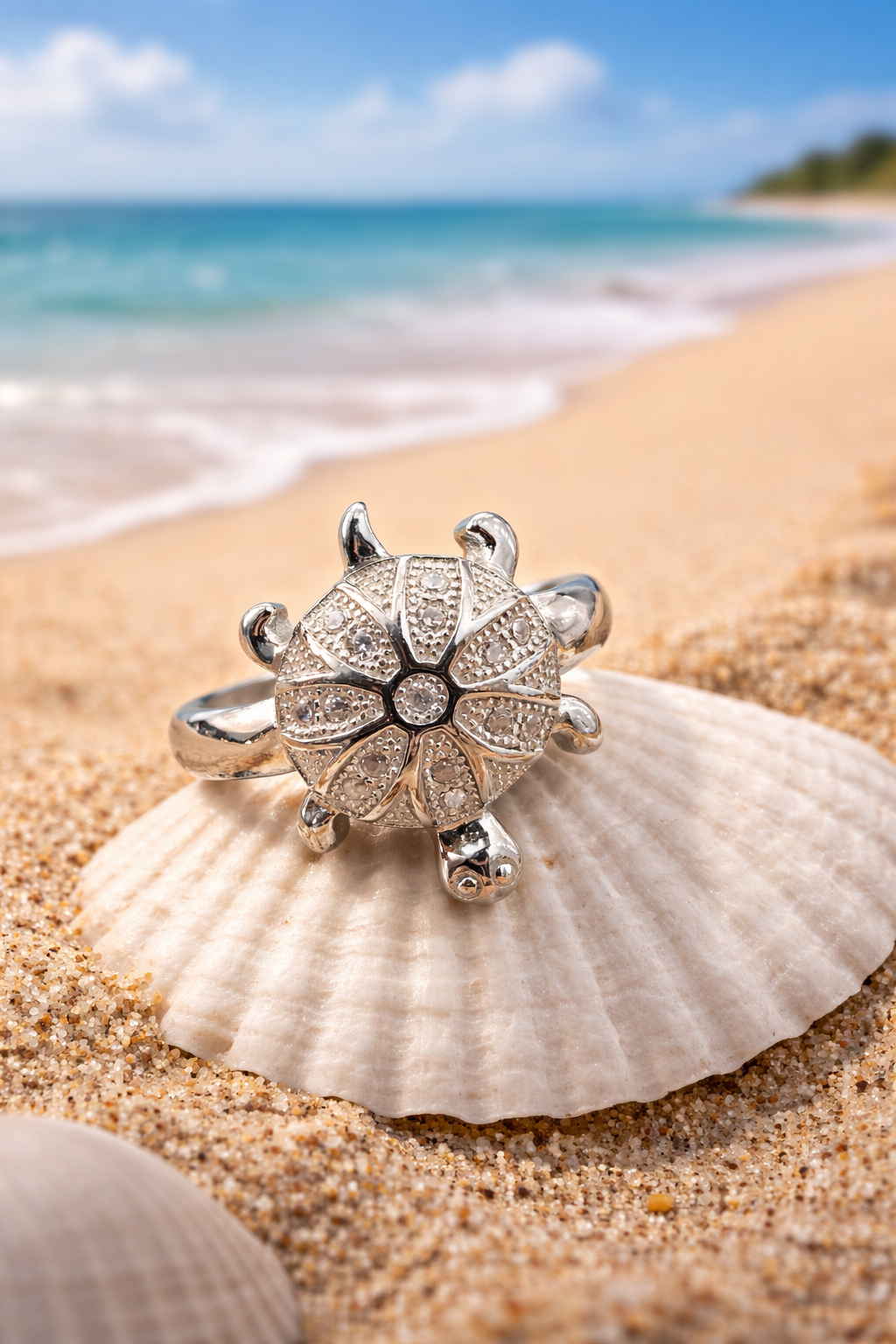 Tortoise (Kachua) Silver Ring from SilverAdda. Crafted in premium sterling silver and accented with brilliant white diamonds, this ring blends meaningful design with everyday elegance. The tortoise symbolizes stability, longevity, and protection — making this piece more than jewelry, but a statement of character.